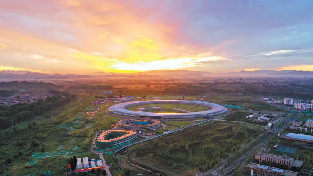 朝霞映红了怀柔科学城大科学装置(高能同步辐射光源)。本报特约摄影 卜向东