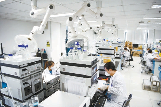 位于北京经开区的北京神州细胞生物技术集团股份公司的质控实验室内,科研人员正在紧张工作。本报记者 和冠欣 摄