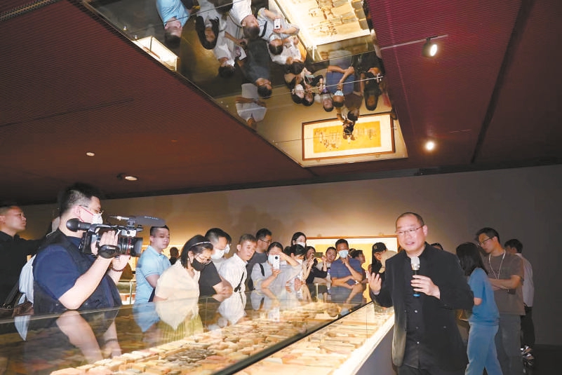 “这次的展览,首度将历时数年、完成于上世纪七十年代末的荣宝斋镇馆之宝——《韩熙载夜宴图》木版水印绢本作品的1667块原版全部展出。观众可以看到展出的《韩熙载夜宴图》木版水印绢本和展柜里的原版是一一对应的。”荣宝斋有限公司党委书记、执行董事赵东说道。陈琦介绍,将木版水印作品和相应印版合璧展出,在呈现作品精彩的同时也能让观众看到其背后复杂的技术逻辑,展现出中国木版水印最高艺术成就。