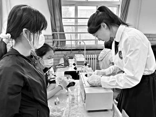 “会放电的柠檬”“我与星星有个约会”“探究微观生命世界”……校园里,操场、实验室、各类教室都敞开大门。化学实验室里座无虚席,六七位高二学生当起小老师,带着客人们走进“肥皂工坊”制作手工皂。