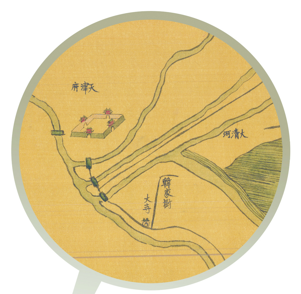 永定河,素有北京“母亲河”之称。展厅内,一幅十米的长卷为我们揭示了这条“母亲河”在清代时的真容。长卷为设色绢本,展示了清代乾隆时期永定河流域全貌;作者通过勾勒、点、染等技法,将流域中的山川、河流、城池、庙宇、亭台、村落一一呈现。从色彩看,赭石、丹青、黄绿贯穿交错,让整幅画面显得春意盎然;墨色晕染折射出山体变换,又以黄绿、朱膘点彩呈现山水之灵动,古意充盈。