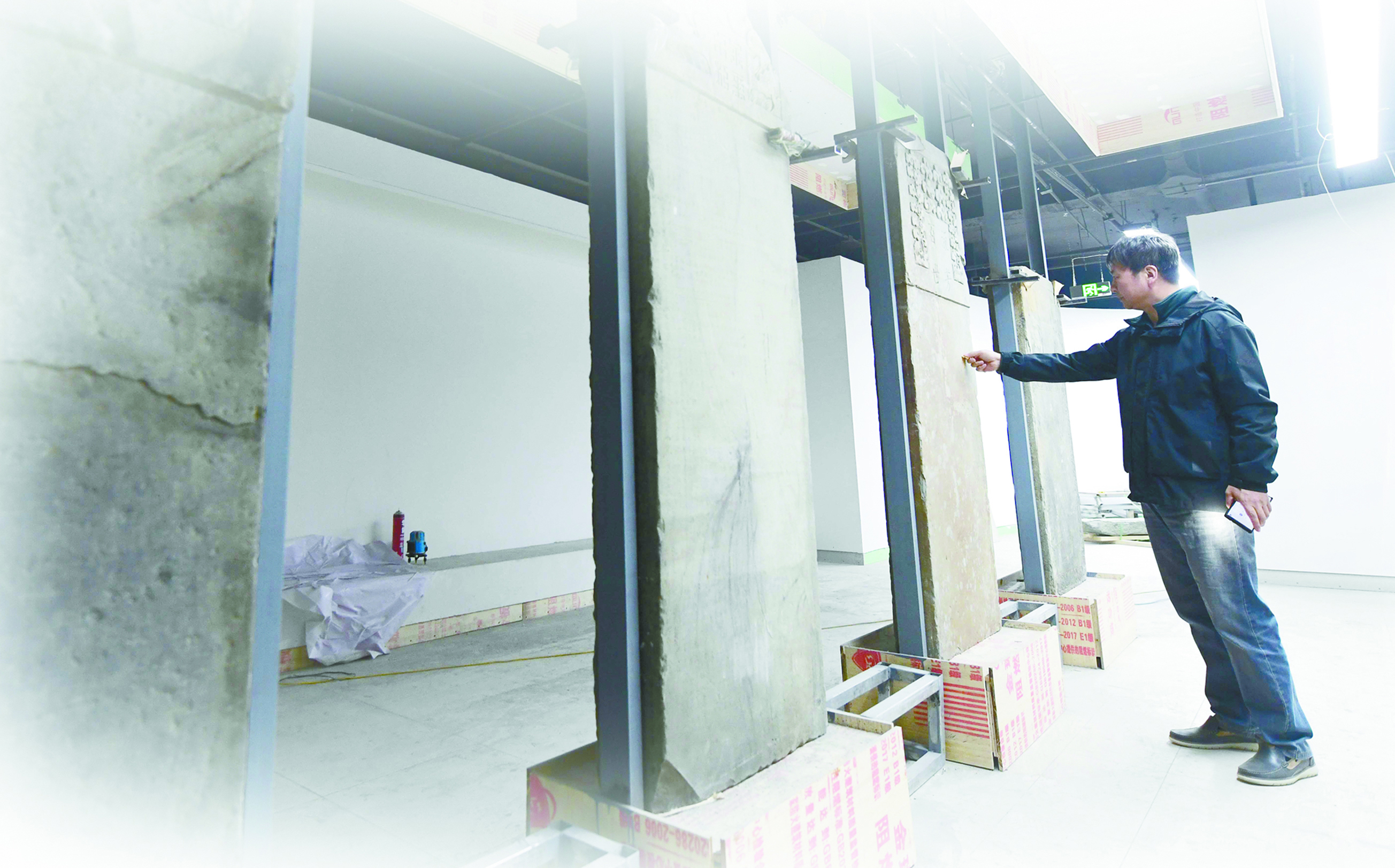 这件石碑也是经历了一番波折才“走”到展厅。“这个石碑在明清时候一直被保存得特别好,近几十年来却不知所踪。”谭勇说,一次,本区的一位文史爱好者到馆座谈时提到他在沿河城村的一位农民家里曾见过石碑。得到这一消息后,谭勇第一时间和对方取得联系并驱车前往。进入院子后,石碑就堆放在柴火垛旁边,谭勇翻过来一看,石碑内容较为完整,他的心中一喜。“行外人不知道石碑的价值。这家人一直将石碑用来垒地窖,得知我们要过去,才刚把石碑搬出来。”
