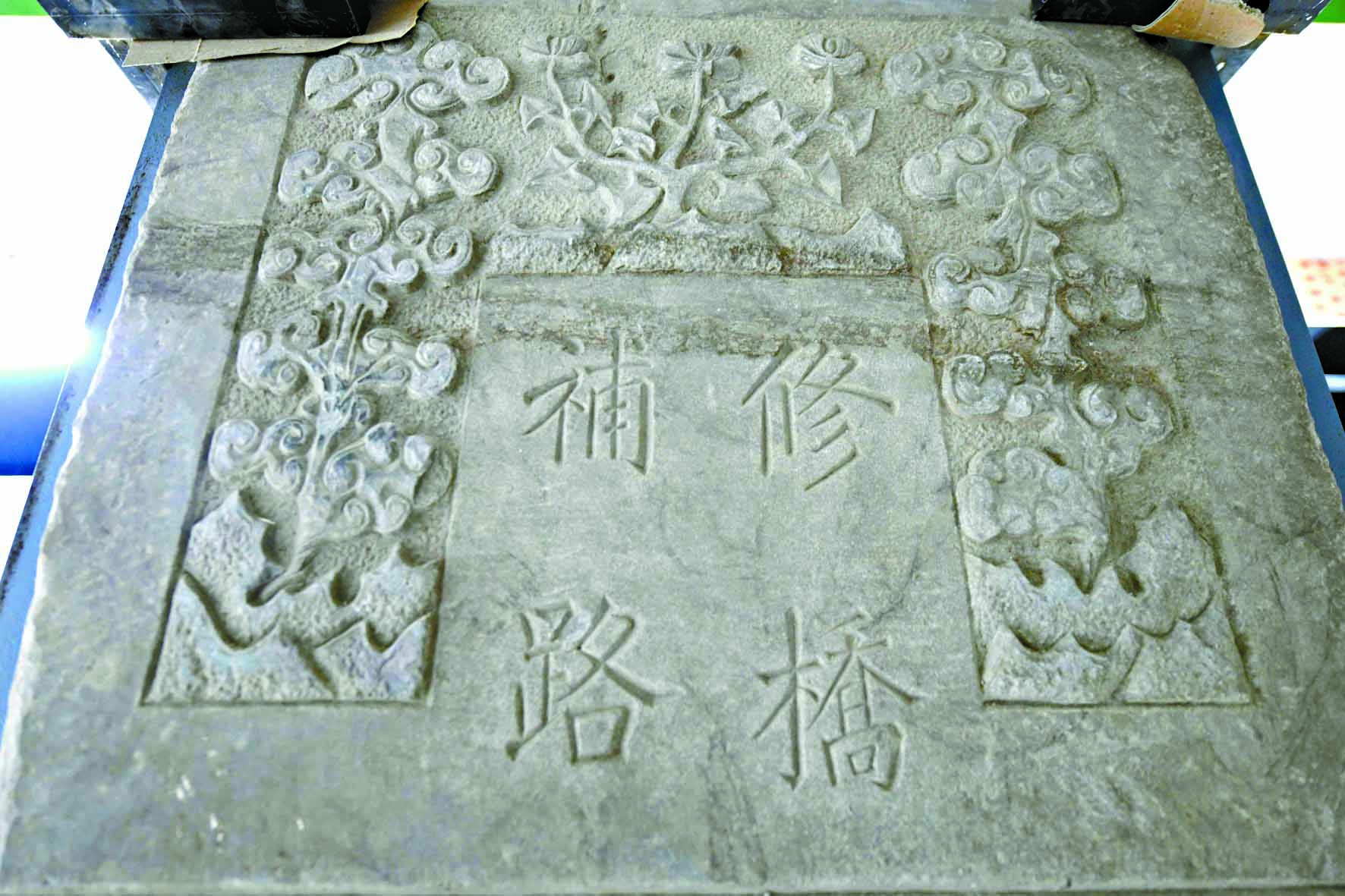 “盖闻自古以来,人生在世,善事不可不作,美誉不可不留……”进入展览第一单元迎面遇到的第一件展品便是“清乾隆门头沟村民众集资修桥补路碑”,记录了门头沟村民众集资修桥补路之事。石碑背面刻有“留名万世”以及村民的姓名及捐钱数额。背面碑额刻有仙水祥云,碑身四周刻有蔓草图案,寓意吉祥、茂盛、长久。