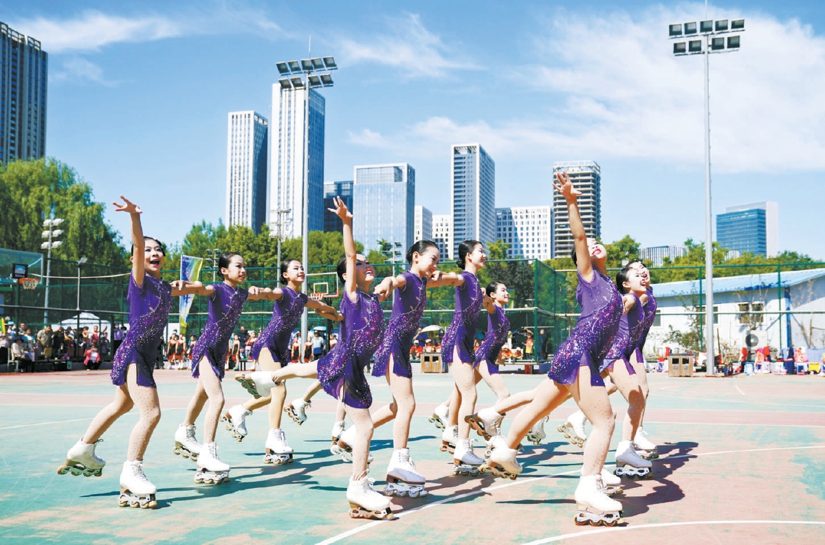 今天,北京市第十四届全民健身体育节开幕式在通州区运河奥体公园体育场举行。开幕仪式后的全民健身比赛活动包含徒步、轮滑、BMX小轮车、飞盘联赛等项目。 本报记者 刘平 摄