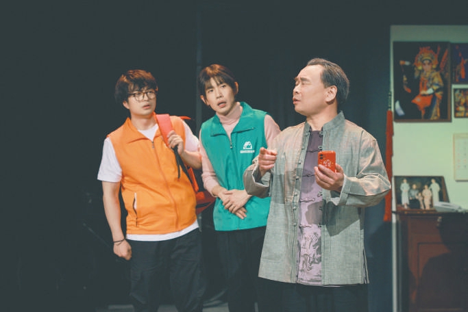 剧中,松岩团长边讲解边示范被形容为“用脚给了手一个嘴巴”的京剧武术动作“飞脚”,还有戏曲表演中的“四功五法”;刘旸一会儿穿着“立人家政”的马甲当“保姆”,一会儿又穿着时尚潮服表演“脱口秀”;宇文秋实戴上假发是满口方言的“四川小保姆”,换成帽子又成了白发苍苍的“北京老大爷”。而松岩之子松天硕,在剧中也惟妙惟肖扮演了好几个各有亮点的生动角色。
