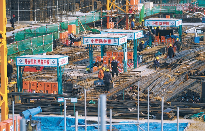 在通马路交通枢纽施工现场,工人们正在忙碌。本报记者 程功 摄