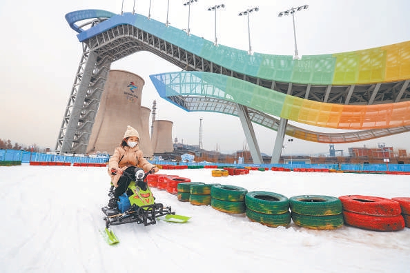 首钢大跳台变身冰雪乐园,市民游客体验冬奥场地的冰雪激情。