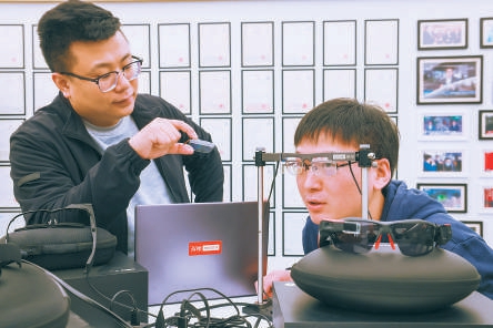 在首钢基金产融创新基地,北京枭龙科技有限公司研发人员讨论AR产品。
