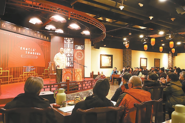 西城广外街道“红心雅集”中华文化传承之“发现曲艺之美京腔曲韵话源头”演出季活动热热闹闹上演了。昨天,来自7个社区的100多位居民欢聚一堂,听相声,品香茗。