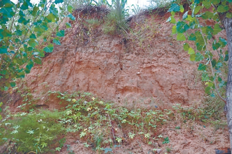 过河上了小山丘,土城边立有巨石,上书红字:土城山。这才意识到小山丘因城堡也有了称谓。向前看到了高高的黄土夯墙,这是城堡的东南角,墙面长满了荒草灌木,枝叶茂盛,很难看到墙体。东城墙低矮如土垄,墙体很宽,平整出几级阶状,上边种着不同的蔬菜,长势良好。墙基上有水管穿过,向墙内送水,墙里面有果树林。