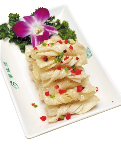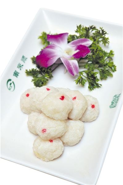 特点:颜色洁白如霜,质地细腻柔韧,馅心松散甜香