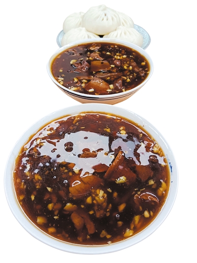 “午梦初醒热面茶,干姜麻酱总须加。”面茶是一种流行于京津地区的特色传统小吃,一般在早晨售卖。清代袁枚所著《随园食单》记载:“熬粗茶叶汁,炒面兑之,加芝麻酱亦可,加牛乳亦可,微加一撮盐。无乳则加奶酥、奶皮亦可。”旧时的北京,冬日里点上一碗面茶做“压轴戏”必不可少。