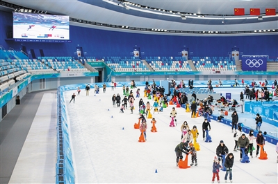 “这里的冰滑着太舒服了,我现在一有时间就想让爸爸带我来。”今年“五一”假期,9岁的李梓宸与爸爸在国家速滑馆“冰丝带”滑了一整天。自去年7月正式对外开放后,“冰丝带”已累计接待游客达10万人次,滑冰爱好者尽情感受着这块诞生过1项世界纪录、10项奥运会纪录的“最快的冰”。场馆还举办了两场“市民速度滑冰系列赛”,并设立“市民纪录墙”,吸引更多人参与冰上运动。
