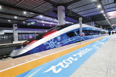 2022年1月21日,清河站,京张高铁冬奥列车开启赛时运输服务。新京报记者 王贵彬 摄
