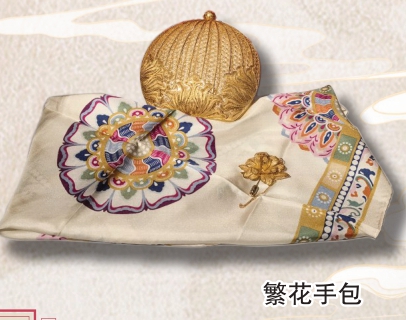 另一件东方艺珍带来的花丝镶嵌“繁花手包”也让人叹为观止。花丝排列细密精致,底部由一朵花丝填制而成的牡丹纹饰衬托,虽无过多华贵装饰,却体现了中国女性的柔美与内敛,同时也象征着东方文化简约中见繁复的内涵,是一件当代难得的艺术与技艺完美结合的作品。