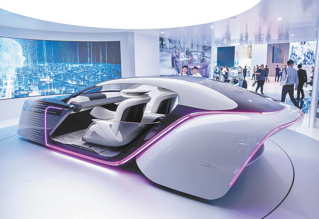 上海车展上红旗汽车展示的智能平台。东方IC供图