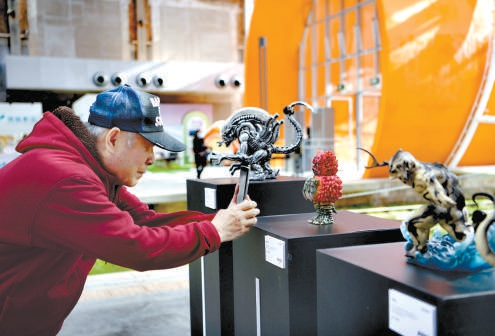 观众张女士才走到入口处的《流浪地球》周边展位,就已经被做工精致的机械车辆模型吸引得迈不开腿了。“这都是电影里出现过的各种机械车!”她一脸兴奋地说,要给儿子买一个带回去,“他肯定喜欢。”这些车辆模型来自徐工集团工程机械股份有限公司,该公司不仅赞助了电影里的机械设备,还把片中的起重机、挖掘机、压路机等做成了周边。展位负责人王琢介绍,他们今年受到北影节邀请,是第一次参加文创品展会。“这些模型都是还原真实机械,我们也没想到在电影节上这么受欢迎。”