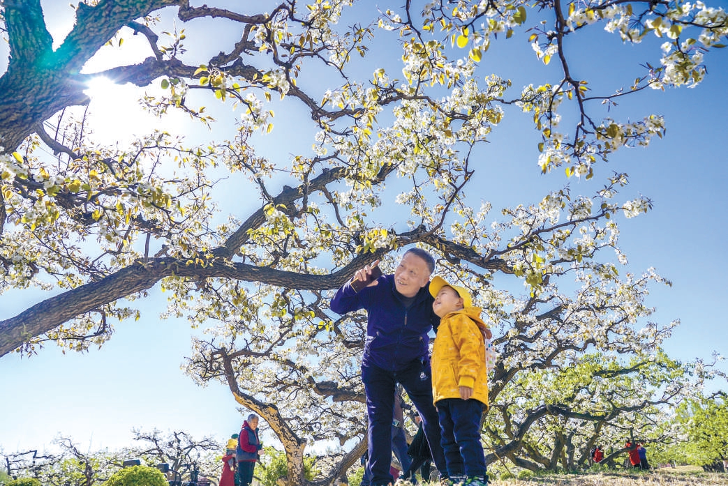 昨天,大兴庞各庄万亩梨园梨花绽放,吸引不少市民来此参观赏景。本报记者 武亦彬摄