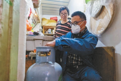 不仅可享送气免费,用气安全检查也免费。家住东中胡同12号的居民柴女士行动不便,社区工作人员主动送来了服务卡。送气上门后,液化气站工作人员给柴女士送上一本“安全手册”,并提醒她做饭时随时查看液化气使用情况,每次做完饭均需关闭气罐阀门。工作人员拿出随身携带的喷壶,在气罐调压器两端喷上肥皂水,检查是否有漏气问题。“检查面面俱到。上个月,王师傅给我家换气时,发现软管老化,及时换了新管。”另一位居民谢女士说。