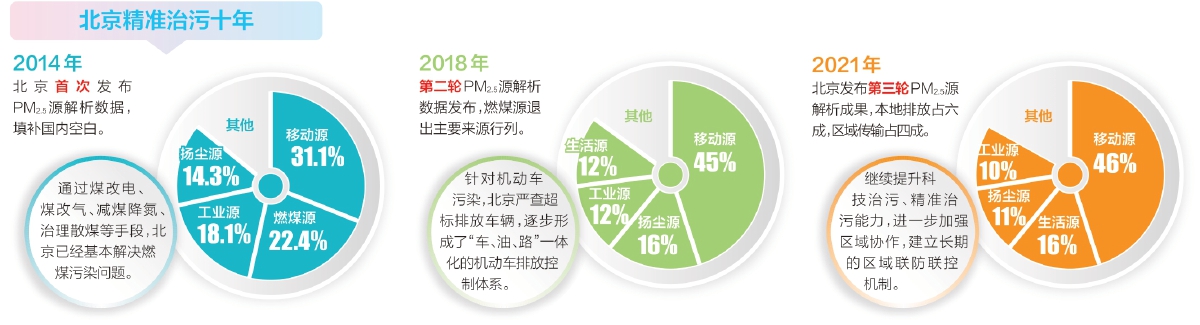 2014年,北京率先在全国发布第一轮PM2.5源解析结果。“当时解析的结果,北京的污染物来源中,区域传输占三分之一,在本地来源中,移动源占31.1%,燃煤源占22.4%,还有扬尘源、工业源。”刘保献回忆。