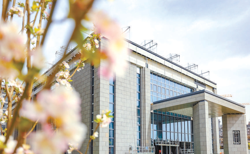 城市副中心规划展览馆外幕墙已经铺设完成,项目预计今年10月竣工。本报记者 潘之望摄