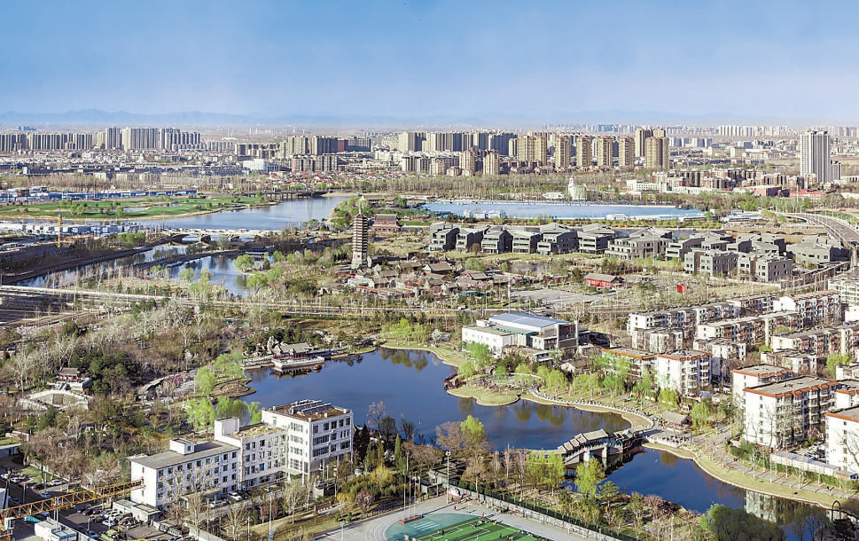 仲春时节,万物萌发。从通州希尔顿酒店高层向东北方远眺,目之所及一片春意盎然。西海子公园清澈的湖水倒映着古色古香的亭台楼阁,不少人正在环湖步道上悠闲漫步。更远处的通惠河水波粼粼,一路向东到达五河交汇处。江南水乡的精致画在了城市副中心的长卷上,映衬着这座城市的勃勃生机。