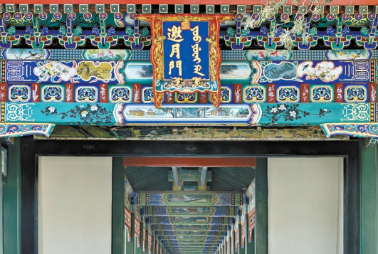 这是一条铺满彩画的画廊,几乎所有梁枋的表面都有丰富多彩的绘画,或为人物,或为花鸟,或为山水,或为建筑,数量达1.4万幅,包含着极为丰富的历史文化和艺术特色。