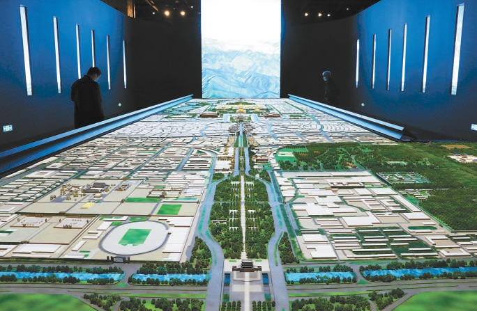 长达16米的北京中轴线巨型沙盘。 本报记者 王广燕摄