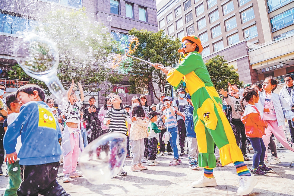 “五一”假期,京郊商圈人气旺。昨天,在顺义空港街道中粮祥云小镇,充满艺术感的鲜花景观点缀街头,三十余家花植品牌现场展示,以花为主题的互动体验吸引不少市民驻足享受一场城市“微度假”。本报记者 武亦彬摄