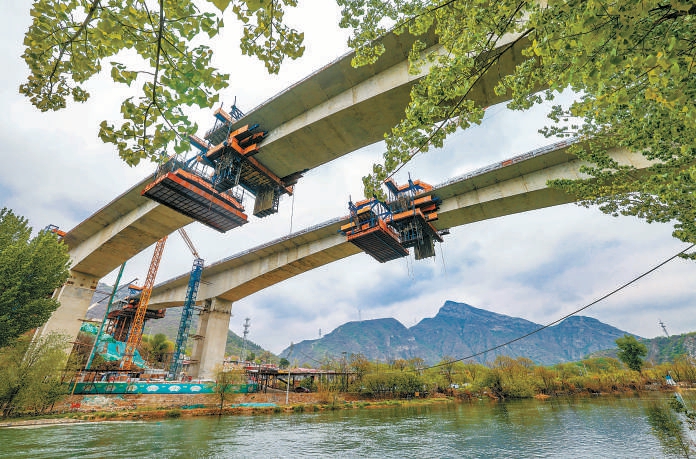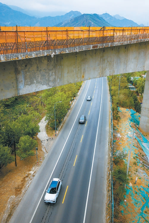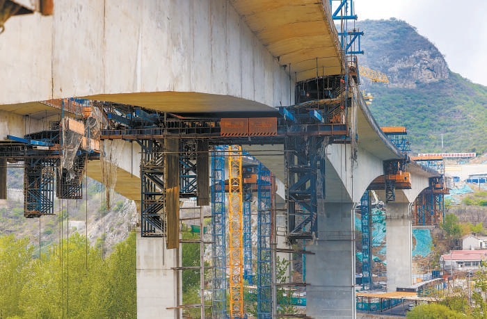 “五一”期间,去往京西妙峰山的游人如织,妙峰山镇石担路之上,国道109新线高速公路陈家庄特大桥的建设者依然坚守岗位,为大桥合龙做最后的冲刺。