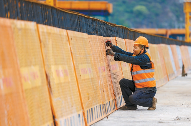 “该区域是北京市一级水源保护区,环水保要求较高。在大桥建设过程中,建设者采用了多种手段最大限度保护环境。”赵生红告诉记者,项目在环水保方面采取在连续刚构挂篮底部设置全封闭兜底,以防杂物、建筑垃圾遗撒至地面,定期组织人员进行清理,防止污染环境。在安全防护方面,在村道上方,项目设置了钢制防护棚,在桥梁顶部两侧设置钢丝防护网、制式防护围挡进行安全防护,防止高空坠物、人员高空坠落的发生。