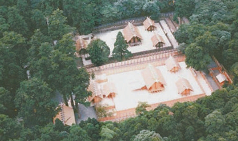 航拍伊势神宫内宫内部。在邻近的空地上,新的、结构相同的建筑已建成。(照片出自斯文德·哈瓦斯《日本伊势神宫——历古弥新》,哥本哈根,1999年。)