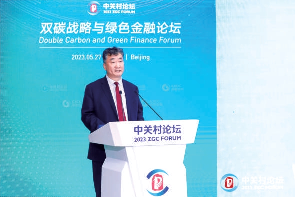 5月27日,中关村论坛“双碳战略与绿色金融”分论坛上,北京银行党委书记、董事长霍学文发表主旨演讲。