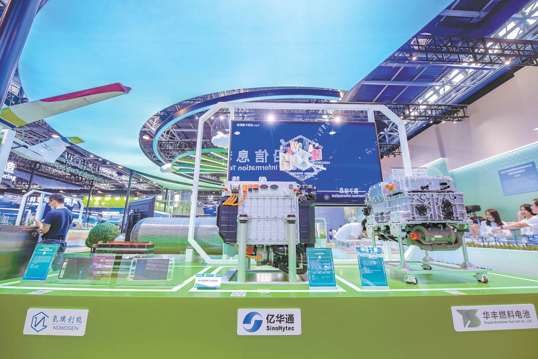 绿色双碳展区,亿华通展示自主研发的180千瓦高效率氢燃料电池发动机系统。本报记者 潘之望摄