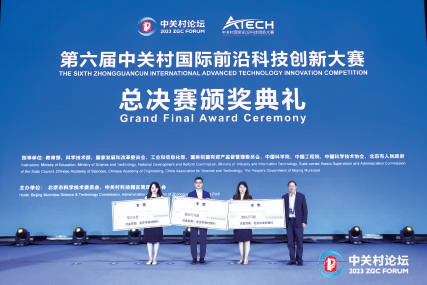5月25日,2023中关村论坛在京开幕,这场国家级、前沿性、国际化的推动全球开放创新、合作共享的科技盛会举世瞩目。作为2023中关村论坛的重要赛事板块,5月28日,第六届中关村国际前沿科技创新大赛总决赛成功举办,本届前沿大赛以“前沿引领共创未来”为主题,是历年大赛中项目数最多、赛道最广、创新最活跃的一届。北京中关村银行作为前沿大赛的长期合作伙伴,已连续两年以“中关村银行杯”冠名大赛赛事,并为大赛获奖企业提供奖金支持及专属金融服务。在总决赛颁奖仪式环节,北京中关村银行董事长郭洪为获得冠亚季军及优秀奖的获奖企业现场颁发超百万元奖金支票,并鼓励获奖企业坚定走产品创新和技术创新路线,加强关键核心技术攻关,为我国破解“卡脖子”难题,实现高水平科技自立自强,为首都构建高精尖产业结构做出更大贡献。