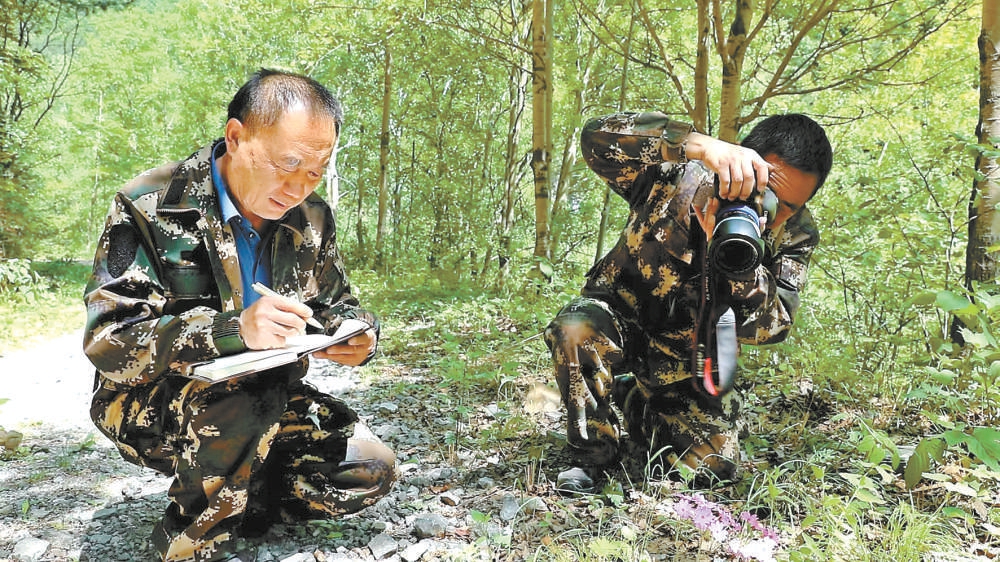 雾灵山林场职工正在对保护区内的野生资源进行普查。 孟辰冉摄