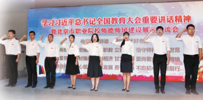 学校青年教师在北京市职业院校师德师风展示交流中进行师德宣誓