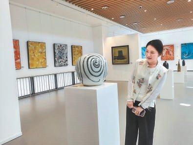 观众在“雄安印象”艺术厅参观艺术品展览。 封俊龙摄