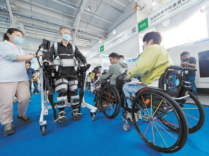 昨天,展会观众现场体验智能辅具。 本报特约摄影 杜建坡