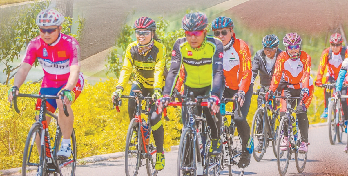 户外运动爱好者们在北运河畔骑行。本报记者 武亦彬摄