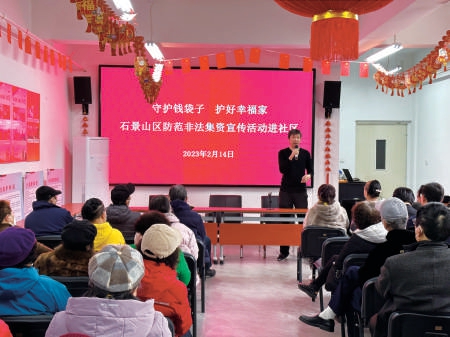 “你图人家的高息,人家要你的本金。”“天上不会掉馅饼,一夜暴富是陷阱。”近日,石景山区金融办、古城街道办事处、古城派出所、工商银行石景山支行共同走进古城街道天翔社区,举办了一场别开生面的金融安全宣传教育活动,为石景山区“守护钱袋子,护好幸福家” 2023年金融安全宣传教育系列活动拉开了序幕。