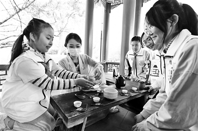 3月29日上午,在中国园博馆室外展区塔影别苑,专职讲解员与由学生们组成的“园林小讲师”队伍一起,带领游客共赏春季园林美景,参与传统插花、品茶、香事文化体验,感受传统园居生活,一起打卡这座生态博物馆,并由此拉开了中国园博馆开放十周年系列活动的序幕。