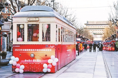 昨日,“2023年全国消费促进月暨京津冀消费季”活动启动,北京前门大街、天津南开古文化街码头、河北石家庄正定古城联动举办启幕活动。北京前门大街主活动现场呈现“食尚至臻”“潮流始发”“炫彩无限”三大板块,聚焦京津冀三地美食、国潮、体育等消费,展现线上线下特色消费场景融合互动。