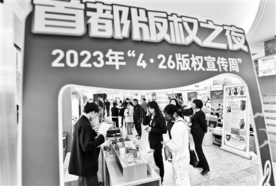 字库版权周边产品、潮玩IP和非遗传承人技艺表演一起呈现,北京中轴线的变迁借数字技术提供沉浸体验,观众还可与工艺美术大师一起共创工艺美术品……在第23个世界知识产权日来临之际,北京市委宣传部(北京市版权局)昨天启动“4·26”版权宣传周系列宣传活动。其中,为期3天的“版权点亮生活之美”——首都版权之夜活动昨晚在北京图书大厦(西单,下同)开幕,活动期间将有内容丰富、形式多样的展示和互动活动,让公众能走近版权、了解版权,更直观地感受知识产权的价值,体验创意产品和创新服务。