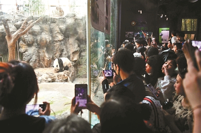 游客在北京动物园观看大熊猫