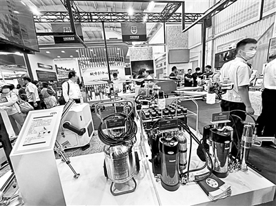 此外,北青报记者在现场还看到灭火机器人和无人机设备。据参展的优选空天科工公司工作人员介绍,公司自主研发的“大壮”无人机,在应急领域可实现应急救援、物资抛投、高空灭火、应急通信等多种场景的应用。