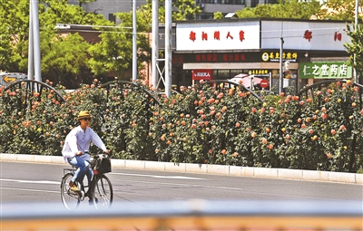 近日,随着气温的上升,北京各环路上的月季迎来第一次盛花期,车水马龙间一条绵延不绝的花带让人格外赏心悦目。