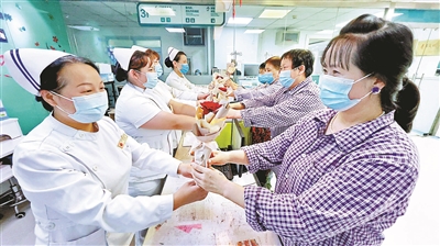 在“5·12”国际护士节来临之际,北京市隆福医院的护士们收到了患者和家属送来的鲜花 供图/隆福医院