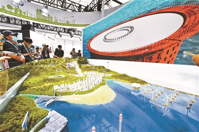 世界海上油田交流输电电压最高、规模最大的岸电项目、全球第一根无过渡段单桩基础、全球第一根大直径嵌岩单桩……十几个“首个”“第一”的字样,是中国电力建设集团展厅的“海上风电”项目“战绩”。