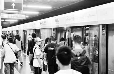 地铁14号线全长50.8公里,连接丽泽、CBD、望京等商务区,方庄、蒲黄榆等多个居民区以及北京南站交通枢纽,是沿线居民出行的重要交通工具。昨天上午9时22分,北青报记者在14号线金台路站看到,每一车门处均有5至7名乘客排队,车厢内也几乎站满乘客。随着3分钟一趟列车到来,到达站台的乘客随来随走,截至9时30分,随着加车到来,站台上和车厢内的乘客明显少了。
